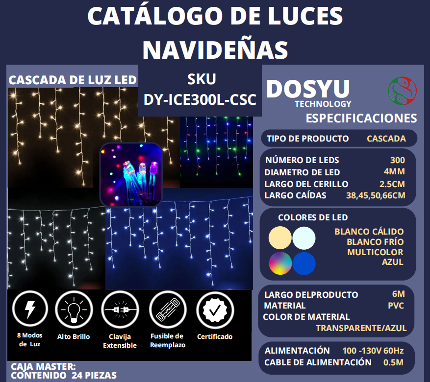 Luz de Navidad 300 LED 6M, Cable Transparente, Muy Ideal para Luz Mexicana 110v, Serie Navideña, con 8 Modos de Iluminación, Perfecto para Decoración de Bodas, Iluminación de Jardines, Árbol de Navidad, Adornos e Iluminación de Ventanas, Iluminación de Pa