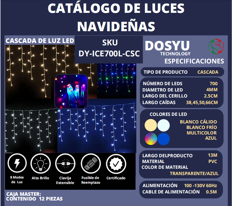 Luz de Navidad 700 LED 13M, Cable Transparente, Muy Ideal para Luz Mexicana 110v, Serie Navidad, con 8 Modos de Iluminación, Perfecto para Decoración de Bodas, Iluminación de Jardines, Árbol de Navidad, Adornos e Iluminación de Ventanas, Iluminación de Pa